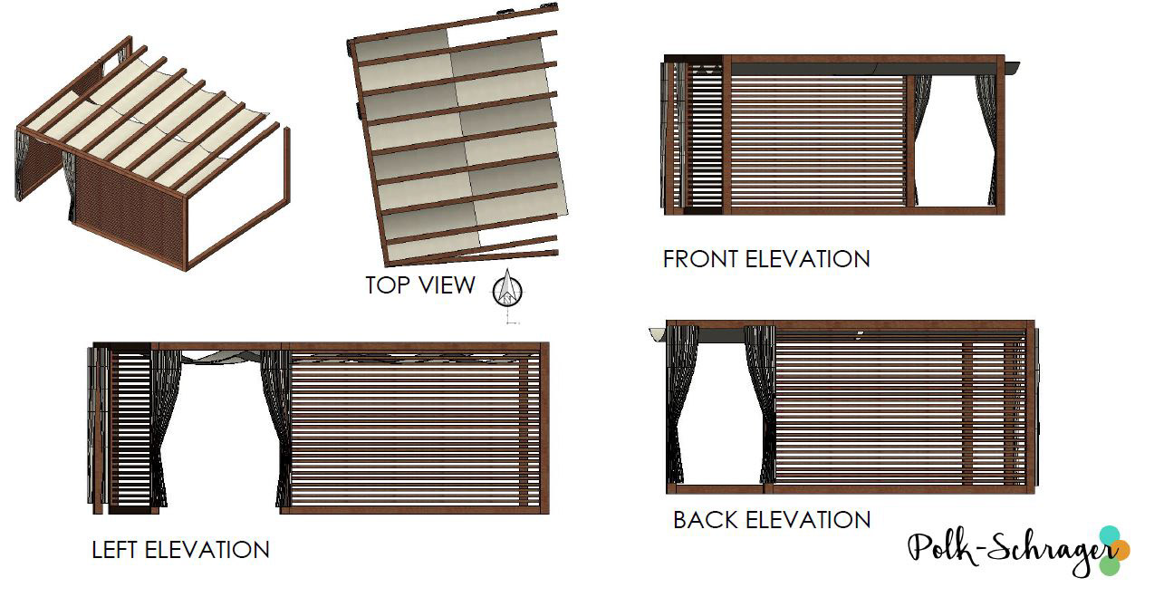 Custom cabana structure designed to be a lounge and transition area between coworking space and Polk-Schrager Office